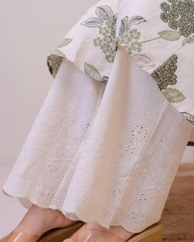 • Bottoms Fabric: Self-design embroidered fabric with beautiful Chikankari-style detailing for a handcrafted finish.